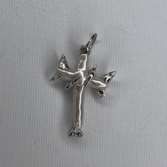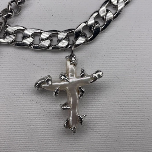 The Soldered Cross Pendant is the centerpiece of our current collection. Hand-soldered, featuring freshwater pearls, and unapologetically bold – it’s the perfect addition to your Y2K jewelry collection. Whether layered over a sleek tank top or styled with a mesh tee, it gives your look that effortlessly cool, grunge-meets-glam energy.